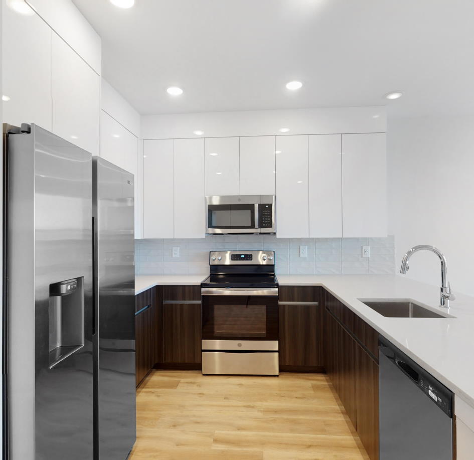 All homes feature opulent interiors finished with upgraded stainless steel appliances, wood-style flooring, quartz countertops, two-tone, multi-textured, and spacious kitchen cabinets, tranquil bathrooms, large closets, in-home laundry, medicine cabinets with LED lights, light dimmers, three-way light switches in bedrooms, glass shower and tub enclosures, water & ice dispensers in the fridge, quiet HVAC, and floor-to-ceiling windows to soak in the sunlight and take in the striking views.